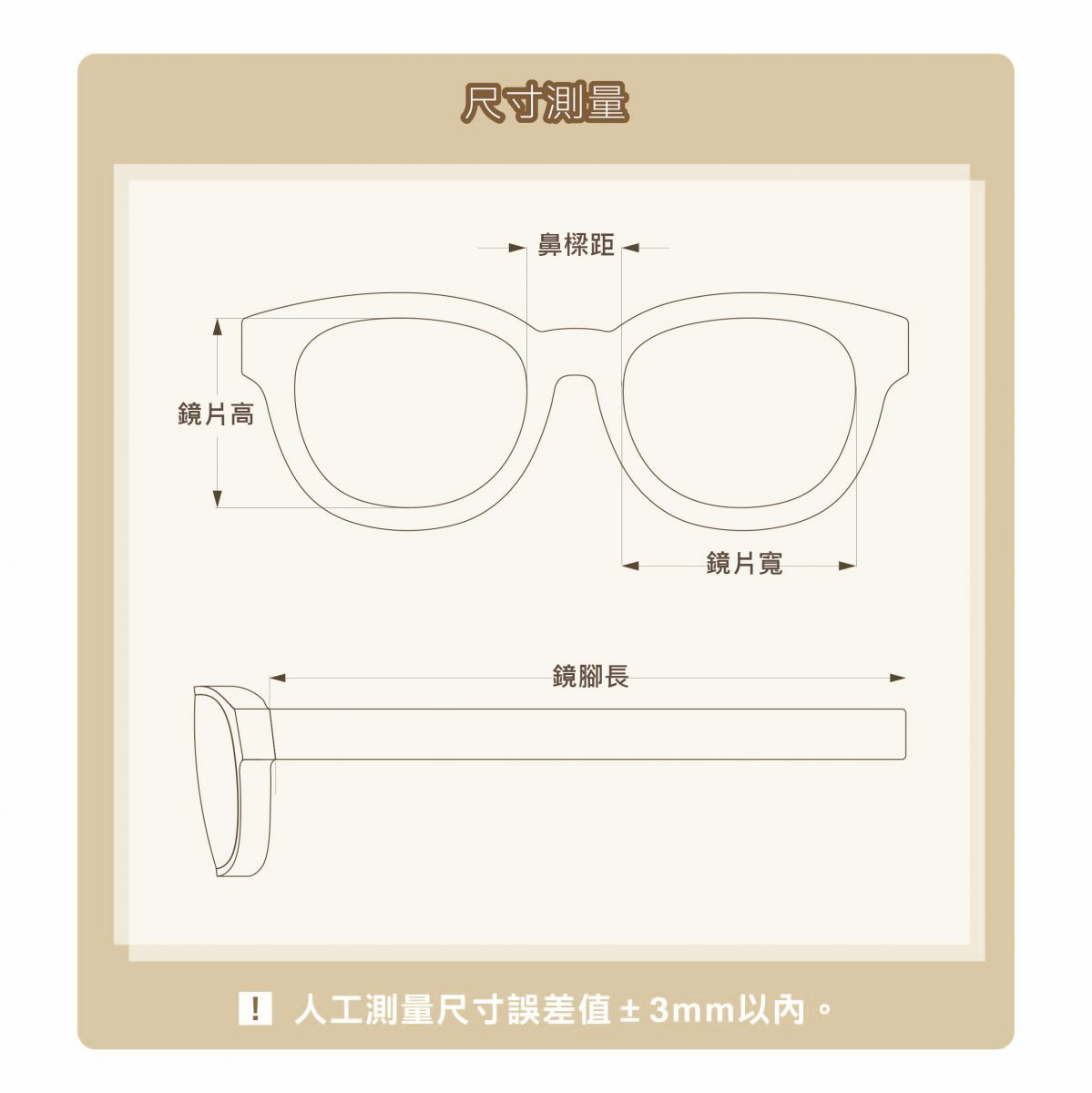 鏡片寬 Lens width 54 mm 鏡片高 Lens height 49 mm 鼻距 Bridge width 15 mm 鏡腳長 Temple length 145 mm